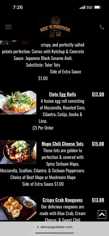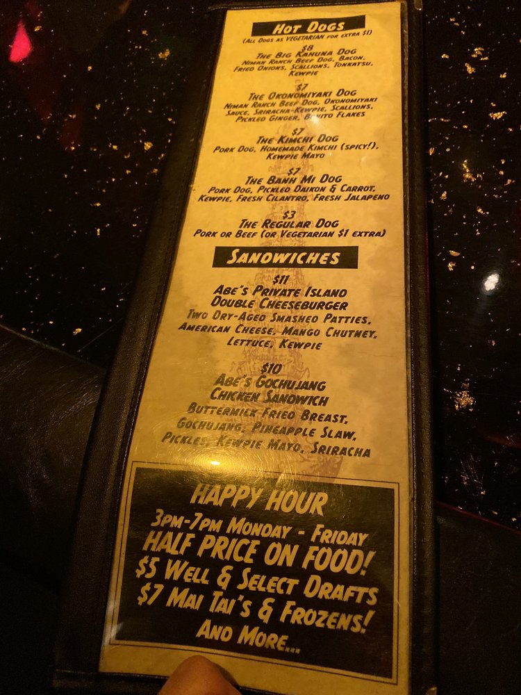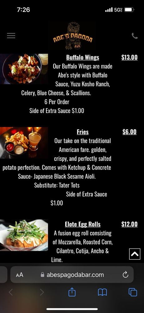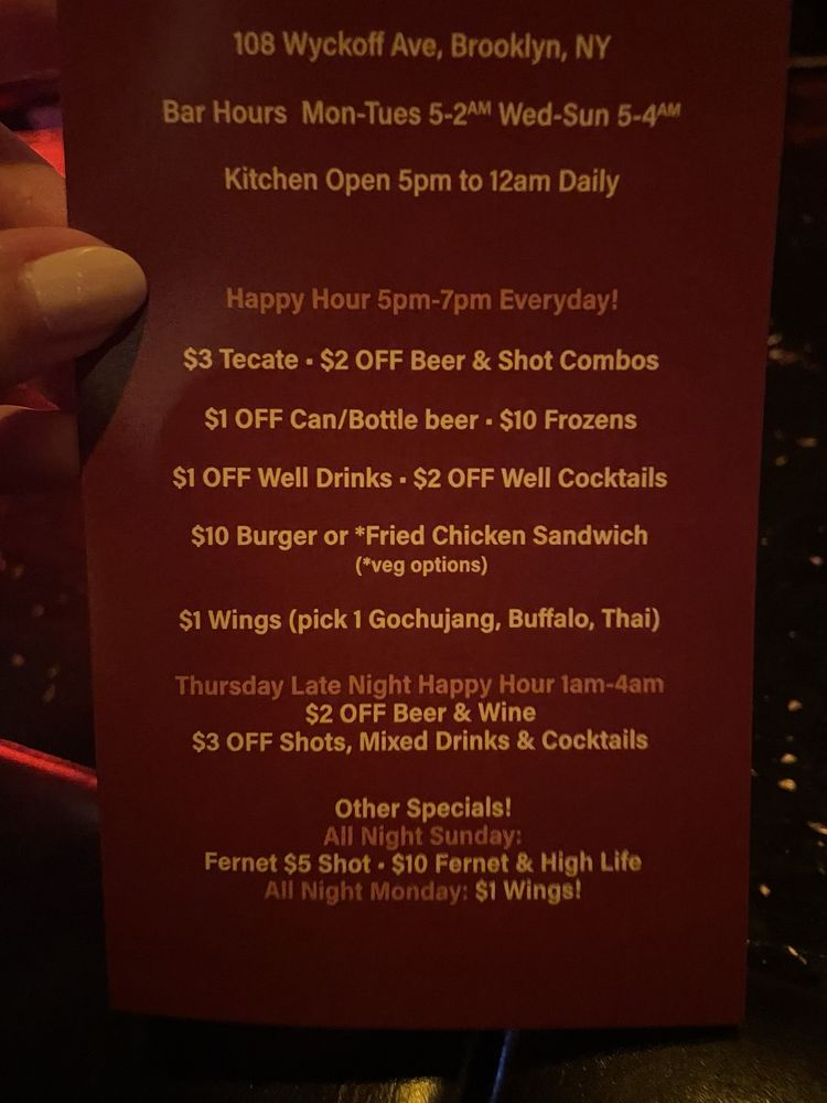 Abe’s Pagoda Bar, located at 108 Wyckoff Ave in Brooklyn, NY, is a popular Tiki Bar known for its delicious Chicken Wings. The menu features unique dishes like Sticky Gochujang Wings and Elote Eggrolls, as well as a variety of vegetarian options. Customers rave about the flavorful food, especially the mushroom mapo chili cheese tots. The bar has a retro aesthetic and offers a great atmosphere for a night out with friends. With amenities like outdoor seating, free Wi-Fi, and a full bar, Abe’s Pagoda Bar caters to a diverse crowd. Whether you're looking for a late night bite or a fun spot to enjoy drinks and dance, Abe’s Pagoda Bar has something for everyone. Don't miss out on their happy hour specials and top-notch service from their friendly staff.